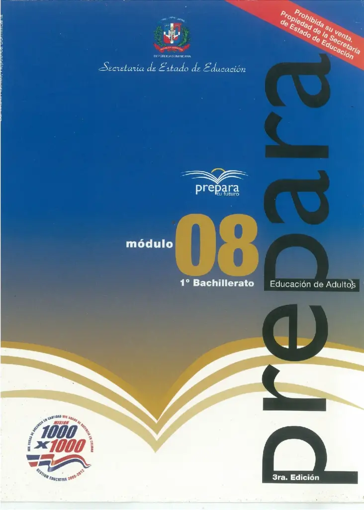 Adquiere el Módulo 8 de 1ro Bachillerato Prepara en formato PDF, una edición especial del MINERD que está diseñada para ayudarte a prepararte de manera eficiente para tus estudios de bachillerato. Este recurso educativo, ofrece una guía completa y detallada de los temas esenciales del primer año de bachillerato.